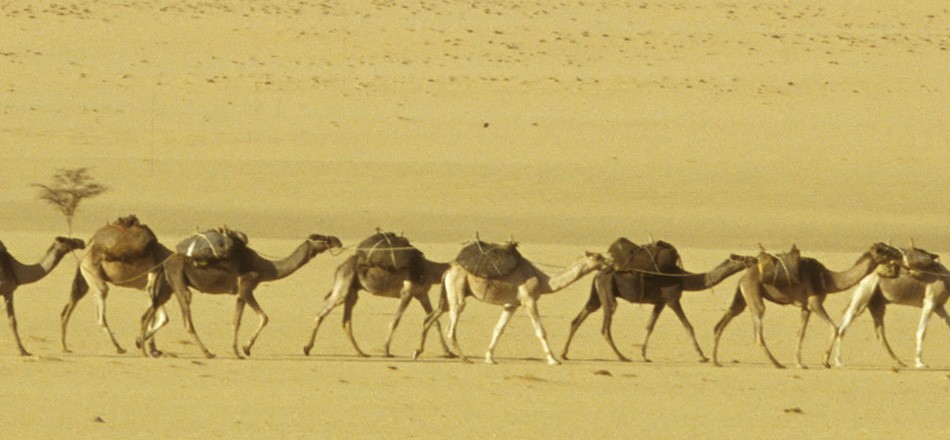 Samt Kamelkarawane durchquert er die Takla Makan, streift durch Bazare mit uralter Handwerkskunst und vibrierender Atmosphäre aus Gerüchen und Geräuschen. Am Fuße der "himmlischen Berge" steht er vor Wandmalereien, die das Leben auf der Seidenstraße erzählen.
